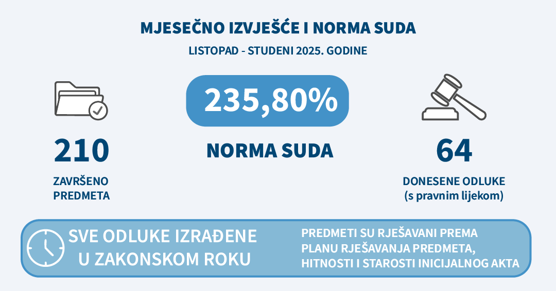 Норма суда за листопад и студени 2025. године износи 235,80 %.